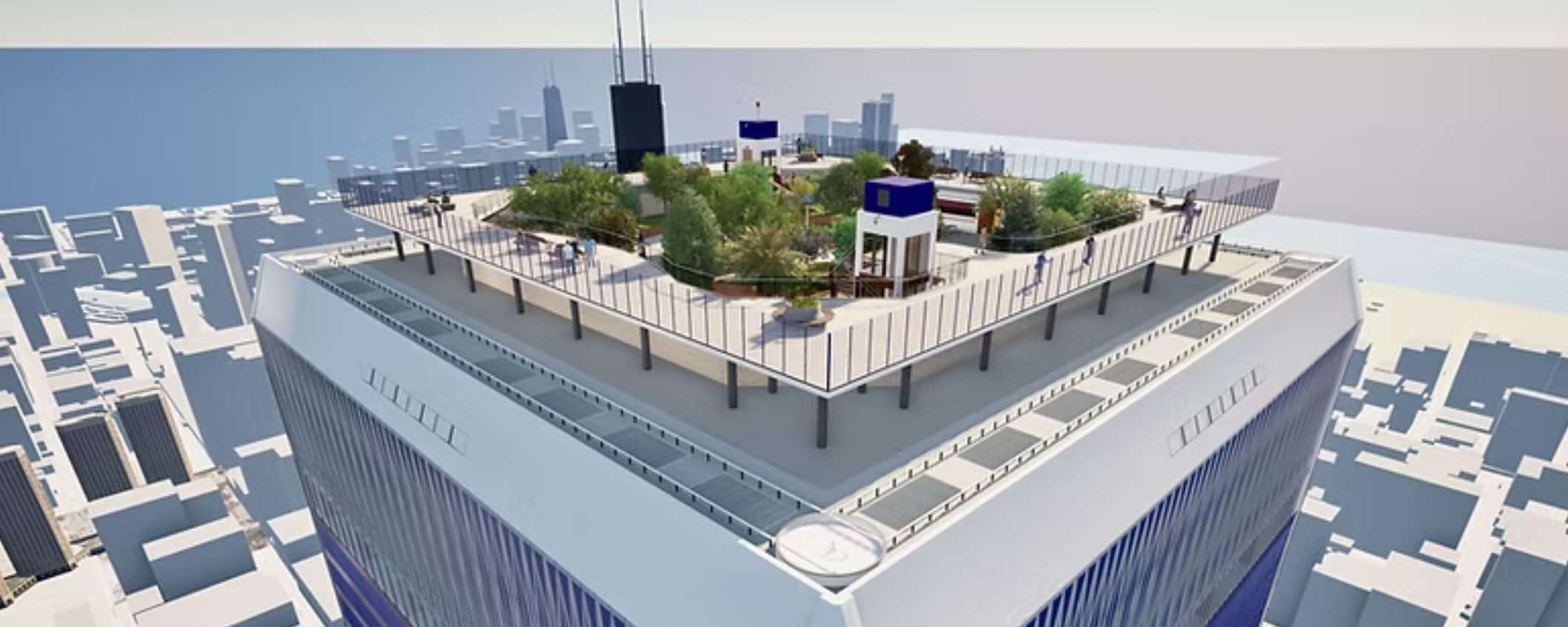 Nove edifici su un campus di 14 ettari nel centro di Chicago. Due torri gemelle nuove di zecca come laboratori STEM e data center AI. Un nucleo centrale in cemento ultra-performante spesso un metro. Travi in acciaio ignifughe. Smorzatori di massa con 1.000 tonnellate d’acqua ciascuno. Droni antincendio. Scale pressurizzate. Un dipartimento dei vigili del fuoco dedicato all’interno dell’edificio. E sul tetto, missili terra-aria e un laser difensivo da multipli megawatt come “ultima risorsa” contro le minacce aeree.