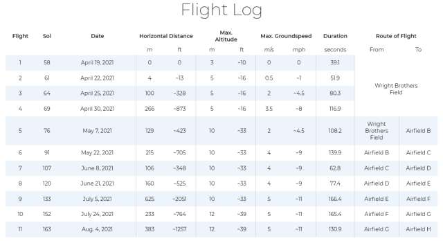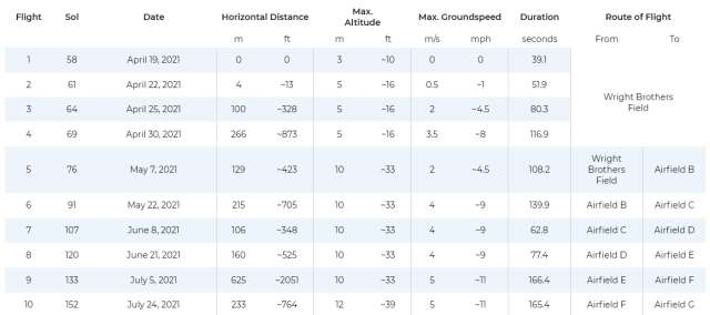Aggiornamento (06/08/2021): Ingenuity ha completato con successo l’undicesimo volo percorrendo circa 380 metri in 130,9 secondi.