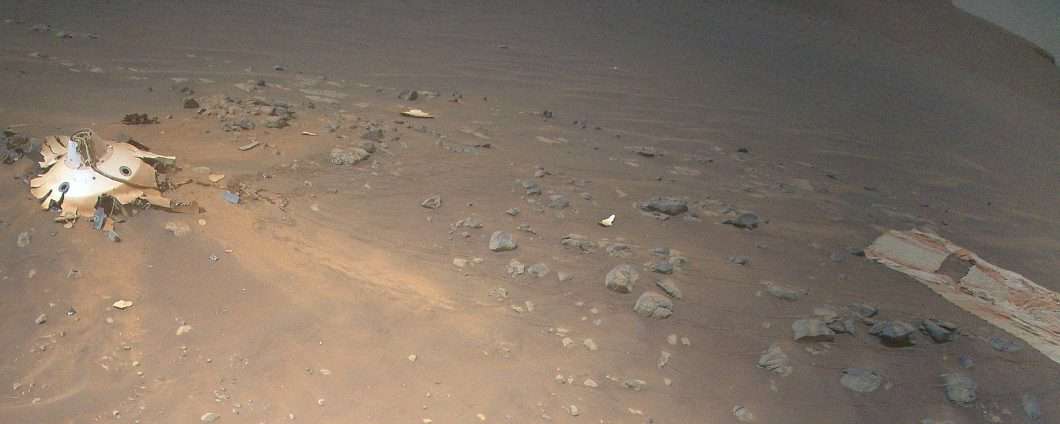 La NASA ha pubblicato alcune foto scattate da Ingenuity durante il 26esimo volo del 19 aprile, in cui si vedono il paracadute e il backshell di Perseverance. Quest’ultimo era stato visto anche dal rover in lontananza durante il suo viaggio verso il delta del fiume. Le immagini dall’alto forniscono interessanti informazioni agli ingegneri dell’agenzia spaziale statunitense.