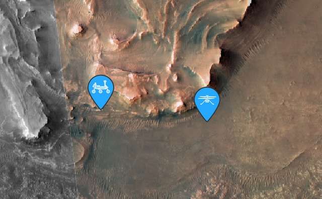 Prima di usare l’accelerometro deve essere modificato il software del computer di volo. La patch, scritta prima dell’arrivo su Marte, consente di intercettare i dati errati dell’inclinometro rotto e sostituirli con quelli ricevuti dall’inclinometro della IMU. La patch verrà inviata e testata nei prossimi giorni. Se non ci saranno altri imprevisti, Ingenuity sarà pronto per il 29esimo volo che lo avvinerà al rover Perseverance. Queste sono le loro posizioni attuali: