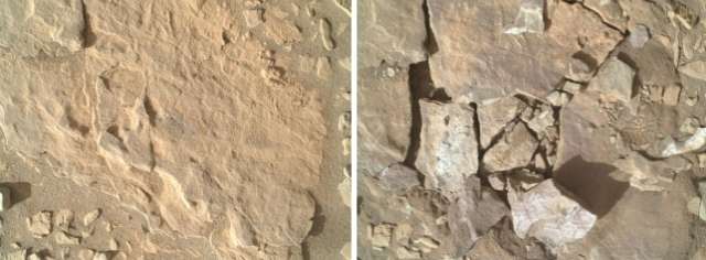 Anche Perseverance ha incontrato un “problema” durante la sua attività di esploratore. La NASA aveva scelto la roccia Chiniak nella zona denominata Enchanted Lake. Durante l’abrasione della superficie, necessaria per verificare la consistenza, gli strumenti del rover hanno causato la rottura della roccia. Nell’immagine si vede la roccia prima e dopo il tentativo di abrasione.