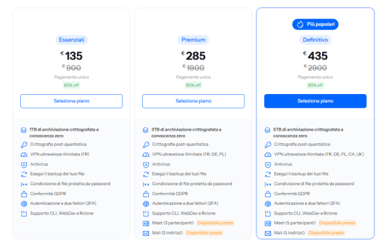 Definitivo: 5 TB di archiviazione a 435€ (-85%) – il piano più popolare tra gli utenti