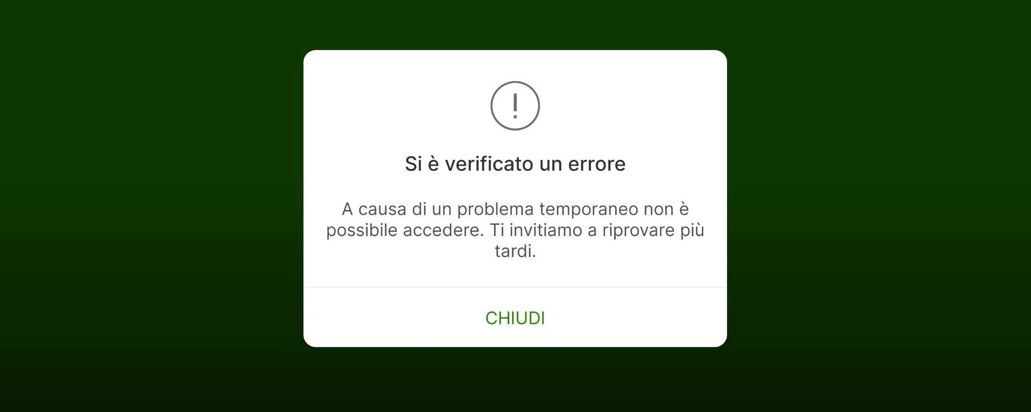 A causa di un problema temporaneo non è possibile accedere. Ti invitiamo a riprovare più tardi.