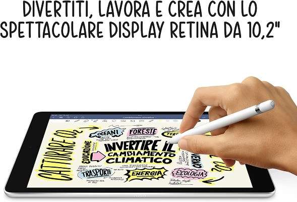 La tua voglia di un nuovo iPad potrebbe essere finalmente soddisfatta perché su Amazon il modello 2021 da 10.2 pollici è ancora disponibile in offerta a 349 euro con uno sconto di 90 euro sul prezzo ufficiale. In più, puoi scegliere se pagare in 5 comode rate da 69 euro ciascuna.