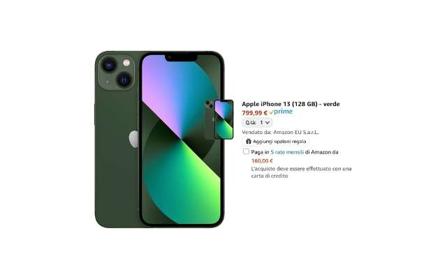 Corri in questo momento su Amazon e acquista l’ottimo Apple iPhone 13 a un prezzo storico. Non è tra quelli più bassi che abbiamo visto, ma sicuramente merita visto che è il colosso dello shopping online a vendertelo e lo puoi anche pagare in 5 rate a tasso zero da 160 euro al mese. Mettilo subito nel carrello a soli 799,99 euro, invece di 939 euro.
