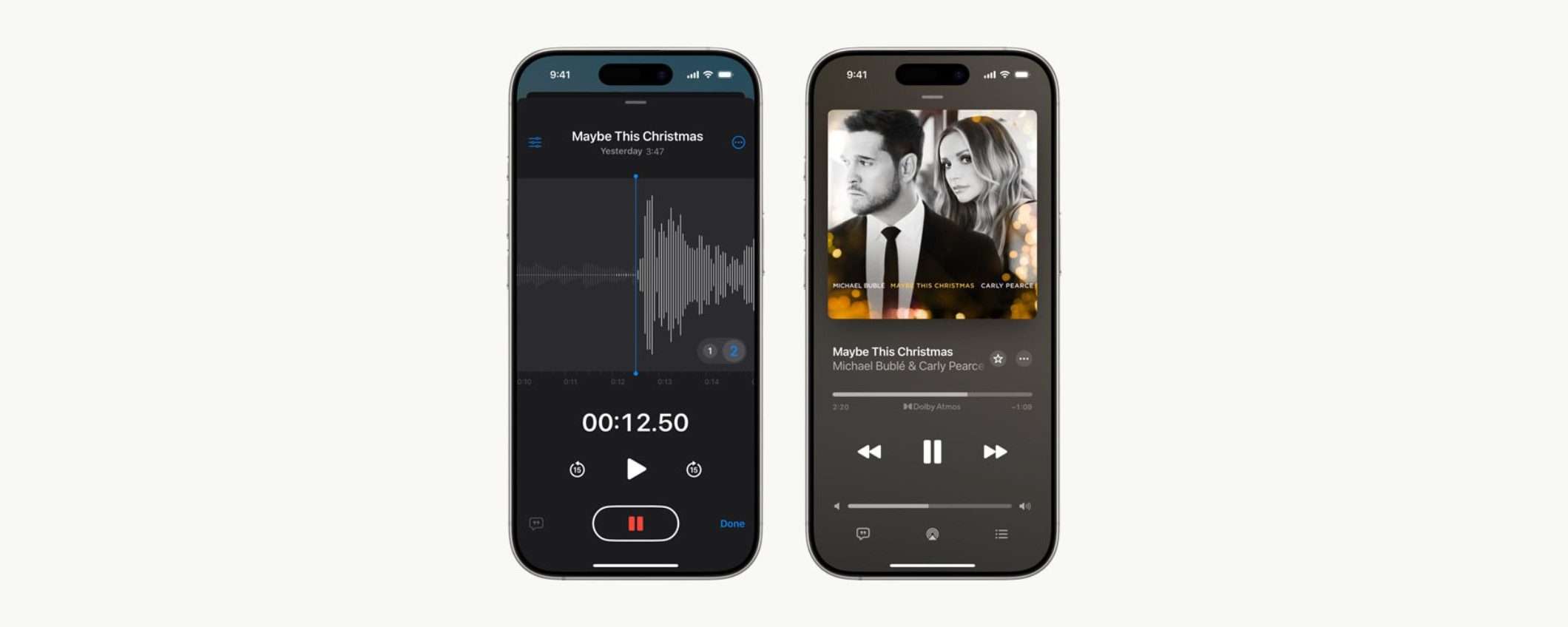 L’update consente agli utenti di sovrapporre una voce a una registrazione strumentale esistente su iPhone 16 Pro e iPhone 16 Pro Max, trasformando l’app Voice Memos in un vero e proprio studio di registrazione portatile. Michael Bublé, la star del country Carly Pearce e il produttore discografico Greg Wells, ne hanno dato dimostrazione con il loro nuovo brano “Maybe This Christmas”, realizzato proprio con Voice Memos su iPhone 16 Pro.