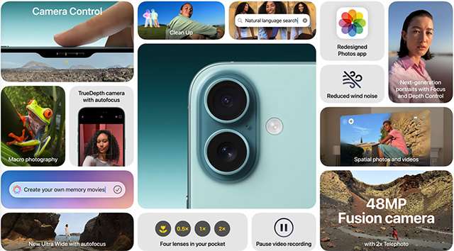 Sono due le versioni base, come previsto: iPhone 16 da 6,1 pollici e iPhone 16 Plus da 6,7 pollici. Entrambe sono dotate di un pulsante azione personalizzabile e del tasto Camera Control laterale per controllare l’avvio e il funzionamento della fotocamera attraverso gesture intuitive.