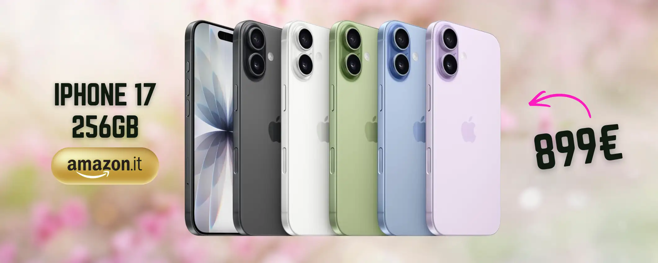iPhone 17, l’ultimo modello base uscito sul mercato, torna in promozione su Amazon. Disponibile in diverse colorazioni e nel taglio di memoria da 256GB, il melafonino più ambito è acquistabile a prezzo vantaggioso. Non solo risparmi, ma puoi pagare anche in 5 rate senza interessi se hai l’opzione disponibile in pagina. Prestazioni di ultimo livello, design rifinito e Apple Intelligence tutto dalla tua parte. Cosa aspetti? Tienilo tra le tue mani comprandolo a soli 899€ subito.
