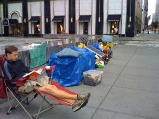 Per quanto attiene alla manciata di appassionati in attesa sulla Quinta Strada a New York, brutte notizie. A quanto pare , la moda di piazzarsi in fila giorni prima dell’uscita di un gadget Apple è già tramontata ma non manca chi, raccogliendo ironia e sberleffi dalla rete, tenta di sfruttare l’hype dell’evento per promuovere i propri ideali. D’altronde, l’ anno scorso non ci fu alcun tipo di problema nell’approvvigionamento di iPhone tale da giustificare l’attesa in fila per giorni, visto che tutti – dal primo all’ultimo – riuscirono a portarsi a casa un melafonino il giorno stesso. Quelli che attesero qualche settimana in più, inoltre, rimediarono anche uno sconto significativo.