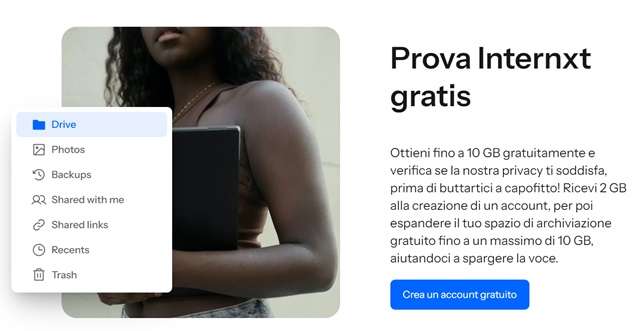 Internxt regala uno spazio cloud da 10 GB gratis per sempre