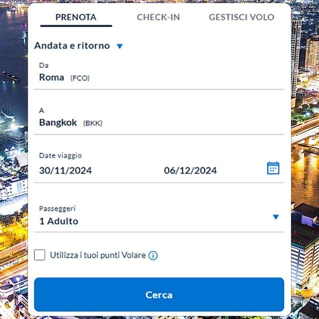 Per la nuova tratta sono disponibili le classi Economy, Premium Economy e Business. Consulta tutti i dettagli sui prezzi e sulla disponibilità dei biglietti con una ricerca sul sito ufficiale. Il viaggio è diretto, senza tappe intermedie, da Fiumicino allo scalo Suvarnabhumi International della capitale thailandese. La partenza è prevista alle 15:15 italiane e l’arrivo alle 8:25 (ora locale). Per il ritorno, da Bangkok a Roma, la partenza è prevista alle 12:15 (ora locale) con arrivo alle 19:15 italiane.