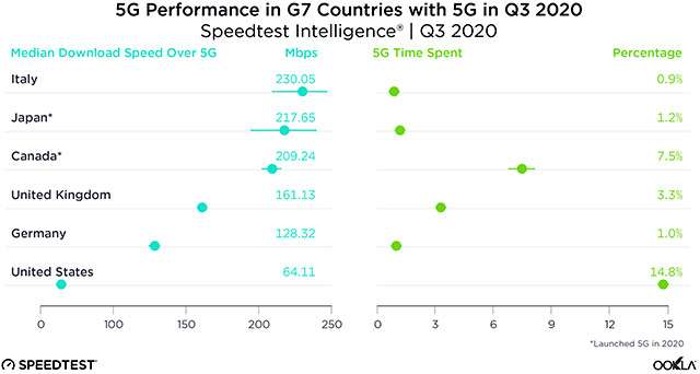 L’Italia ha il 5G più veloce tra i paesi del G7, gli Stati Uniti quello più lento.