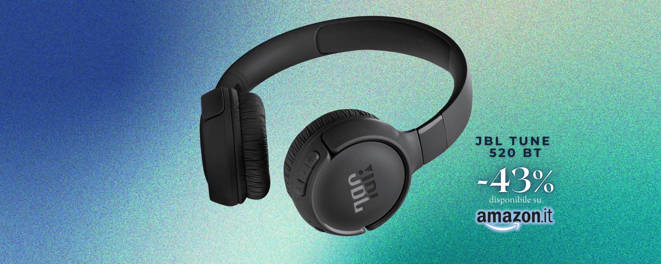 Le JBL Tune 520 BT sono cuffie Bluetooth perfette per spendere poco e ottenere un audio tutto di qualità. Un modello On Ear da abbinare a smartphone, laptop e da utilizzare senza freni perché senza fili, ma con tanta autonomia. Sono tra le più acquistate di sempre e con lo sconto del 43% che si registra con questo gennaio 2026, sono ancora più preziose. Direttamente su Amazon le compri a soli 34,71€, ma mettile in carrello prima che il prezzo torni a lievitare.
