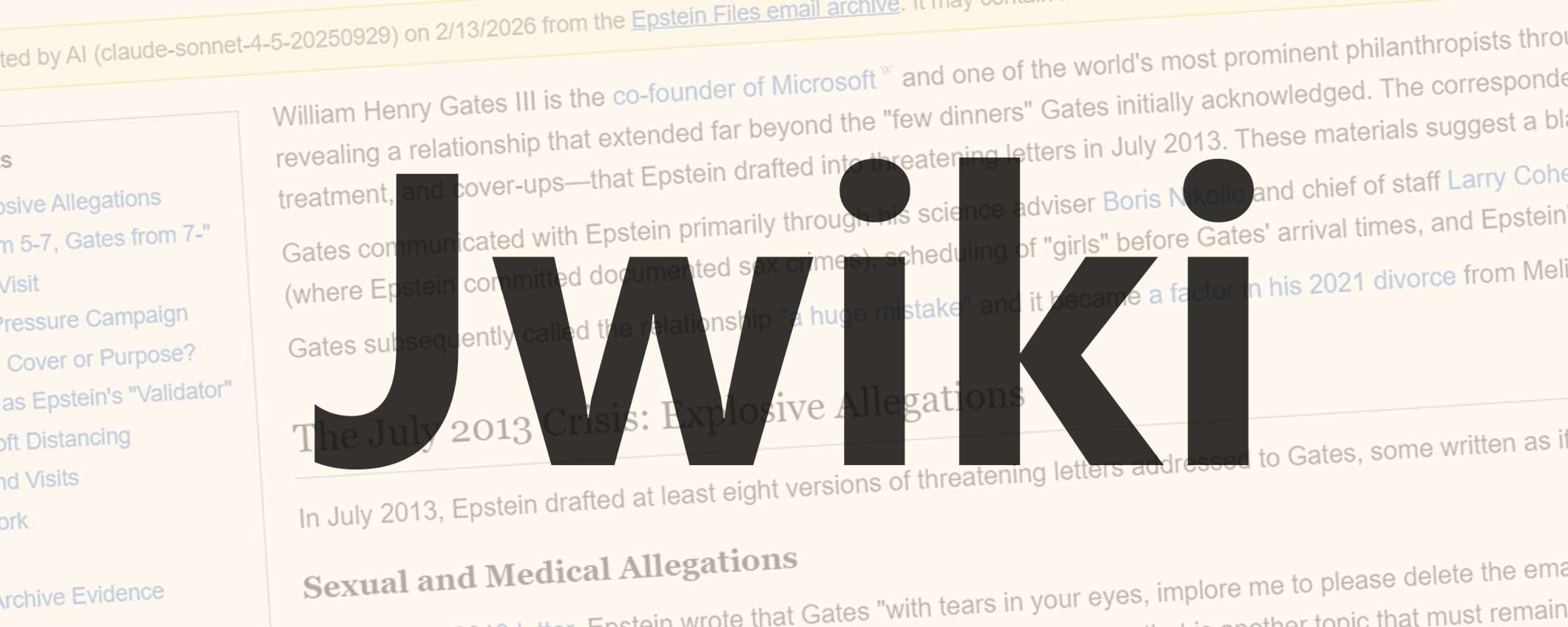 Dagli stessi creatori di Jmail, è arrivato Jwiki. Come si intuisce dal nome, è un portale che replica l’interfaccia di Wikipedia, ma che contiene solo ed esclusivamente informazioni su Jeffrey Epstein. Più nel dettaglio, in questo caso, a proposito dei suoi contatti. È un modo per indicizzare i contenuti dell’archivio pubblicato, rendendolo più accessibile.