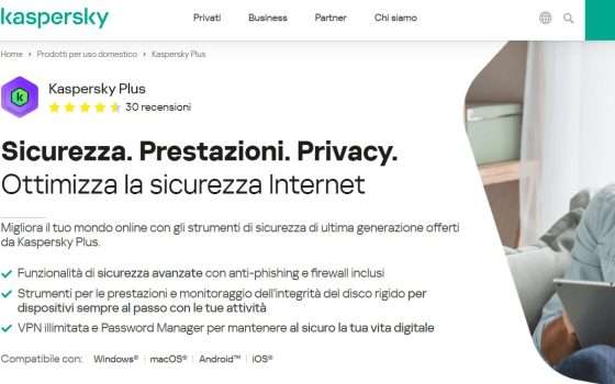 Non a caso, Kaspersky ha pensato di realizzare un servizio unico, mettendo a disposizione degli utenti antivirus, sicurezza dei pagamenti e una serie di funzionalità di privacy per assicurare la massima sicurezza online. Oggi tutto questo può essere tuo pagando solamente 19 euro/anno perchè Kaspersky ha deciso di anticipare i saldi natalizi per te!