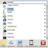 L’altra novità di spicco dell’interfaccia di KDE 4.0 è il nuovo menù di avvio basato sul progetto Kickoff di OpenSUSE . Riscritto e adattato al nuovo ambiente, Kickoff presenta una nuova interfaccia a schede (tab) che offre una facilità di navigazione e una pulizia decisamente superiori al menu di KDE 3.5: quest’ultimo è tuttavia ancora presente, e può continuare ad essere utilizzato da tutti i “nostalgici” della vecchia interfaccia.