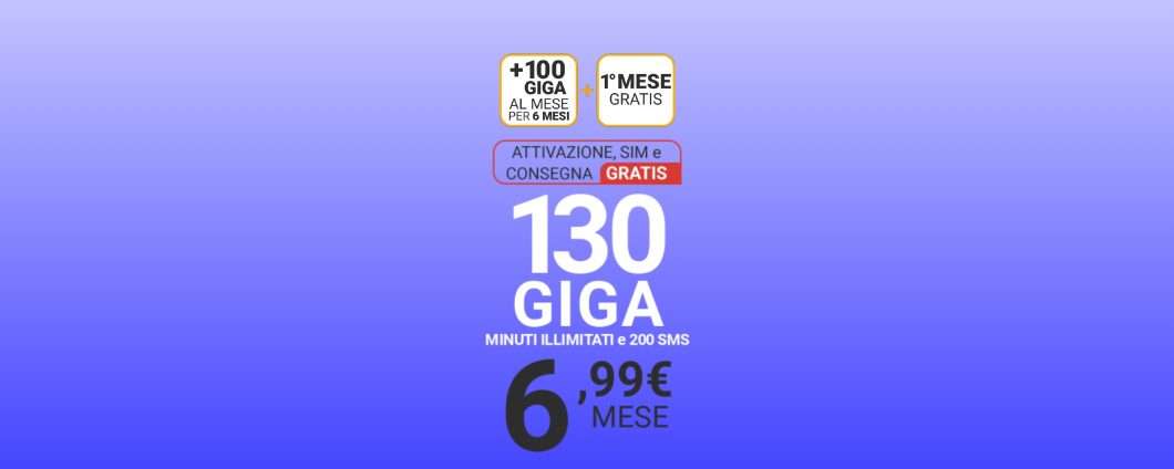 Questa tariffa offre minuti e SMS illimitati, oltre a 130 GB di dati 4G con velocità fino a 60 Mbps al mese, al prezzo di 6,99 euro al mese, con attivazione gratuita. Inoltre, tutti i nuovi clienti ricevono il primo mese gratuito.