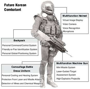 A raccontare la vicenda al Korea Times è stata una fonte anonima dell’Agenzia per lo Sviluppo della Difesa, l’ente sudcoreano deputato alla realizzazione delle nuove tecnologie militari. Stando alla testimonianza , lo sviluppo materiale della nuova uniforme dovrebbe iniziare nel 2009. In anticipo sulle mosse di nemici e game developers .