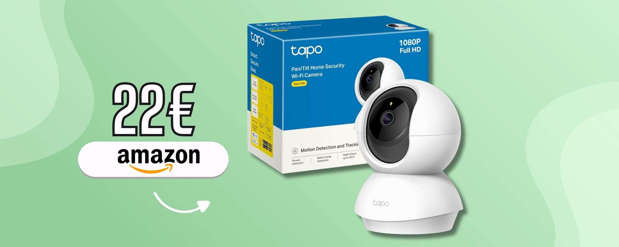Consoli 21,99 euro su Amazon invece di 29,99 euro, come vedi, Tapo C200 ti regala una sicurezza senza confini. Acquistala approfittando dello sconto del 27%.