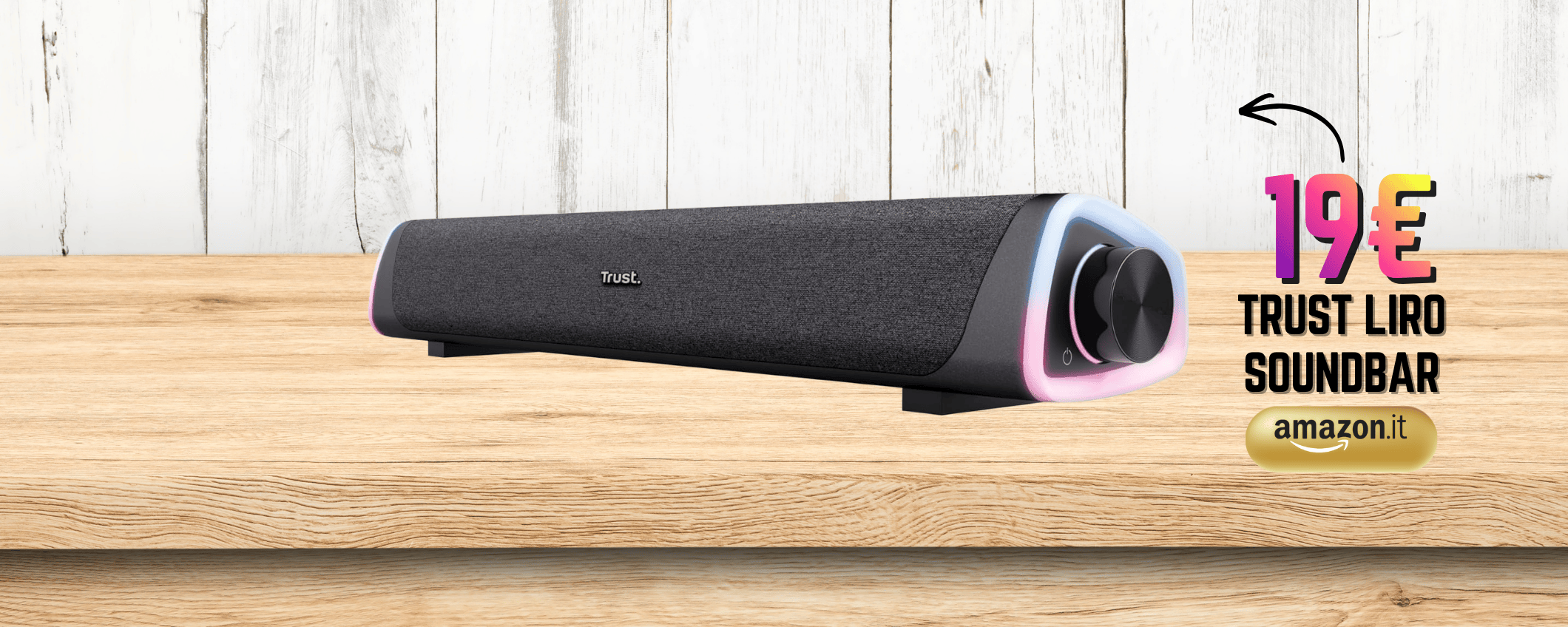 Con un bello sconto del 32%, la soundbar Liro di Trust è l’aggiunta che completa la scrivania e postazione computer. Vedi l’offerta su Amazon per farla tua ad appena 18,99€.