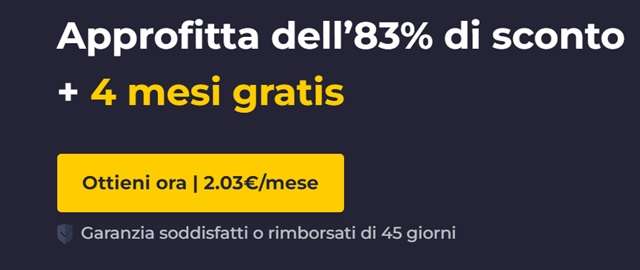 Ma c’è un’altra notizia ancora più bella: grazie alla garanzia Soddisfatti o rimborsati, puoi provare gratis la VPN di CyberGhost per 45 giorni, un tempo nettamente superiore rispetto ai canonici 14 giorni offerti dalla concorrenza.