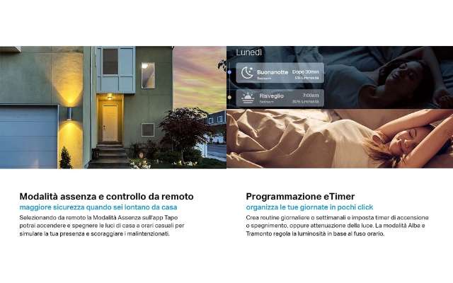 Grazie all’applicazione Tapo la gestisci anche da remoto mentre sei fuori casa. Puoi programmare l’accensione a un determinato orario per non trovarti al buio quando ritorni a casa. Oppure puoi farlo quando sei in viaggio come deterrente contro eventuali furti. Compatibile con Alexa e Google Home, rientra tra i dispositivi di Casa Intelligente che possono essere gestiti tramite comandi vocali. La consegna gratuita è garantita per tutti i clienti Prime.