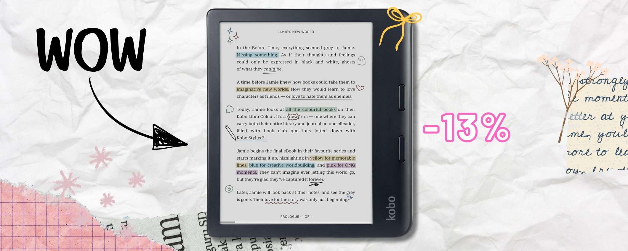 Il ribasso è ottimo perché ti fa risparmiare e aggiungere un gruzzoletto al tuo portafoglio da poter spendere per la tbr infinita. In più hai un prodotto unico sul mercato che unisce tutti i vantaggi di un display e-ink a colori. Finalmente hai copertine vibranti, possibilità di disegnare, scrivere e sottolineare in modo creativo e ti godi le graphic novel senza compromessi.