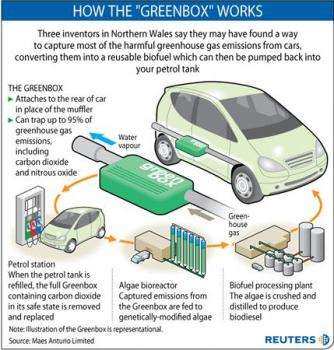 Già perché la “Greenbox”, oltre ad immagazzinare i gas nocivi, ne permette una successiva rielaborazione , capace di generare bio-carburante. Grazie ad una reazione chimica con una speciale alga, infatti, si ottiene una sorta di bio-combustibile che può essere utilizzato, ad esempio, al posto del diesel. Il processo chimico permette anche la produzione di gas metano e fertilizzante – ovviamente separabili nella fase finale. Secondo le stime, una coltivazione di 1000 acri (4 chilometri quadrati) di alghe sarebbe sufficiente per filtrare le emissioni automobilistiche dell’intera nazione. Contemporaneamente, sarebbero sufficienti non più di 10 strutture per gestire le “Greenbox” di 30 milioni di veicoli.