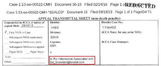 Che fosse Edward Snowden l’obiettivo per cui il governo statunitense aveva agito per ottenere la chiave SSL che avrebbe permesso di decifrare tutto il traffico email di tutti gli utenti di Lavabit era un’indiscrezione che ha accompagnato il dipanarsi del caso, fin dalle prime ricostruzioni . Levison ha combattuto strenuamente, e la condanna per inedempienza confermata in appello non ha scoraggiato il fondatore del servizio dal rivendicare la trasparenza invocata fin da principio.