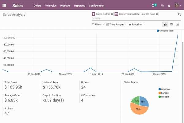 Odoo è un CRM open source che offre una suite interamente personalizzabile e integrata. Ideale per accrescere il business delle piccole e medie imprese, Odoo propone numerosi tool capaci di soddisfare ogni necessità delle aziende lato vendite, marketing, contabilità, produzione e inventario.