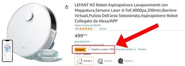 In questo caso il prezzo di partenza da 599 euro è abbattuto a 499 euro nella versione bianca ed un coupon ulteriore affossa il prezzo a soli 349,99 euro: un’offerta irrinunciabile, per un device che sembra progettato appositamente per tutte quelle case in cui bambini, animali domestici, attività continue e disordine richiedono al robot un’attività particolarmente intelligente ed incisiva giorno dopo giorno.