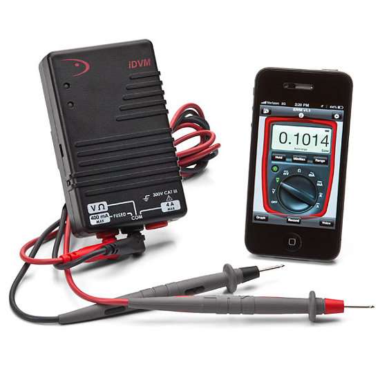 Si tratta di un vero e proprio multimetro con il quale è possibile misurare tensione, corrente o resistenza su un circuito elettrico, visionandone i risultati direttamente sullo schermo dello smartphone di Cupertino, oppure su un iPod o un iPad.