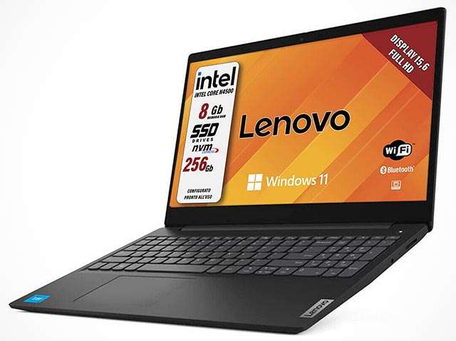 Diamo uno sguardo alle specifiche tecniche integrate nel design compatto ed elegante del portatile: display da 15,6 pollici con risoluzione Full HD, processore Intel Celeron N4500 con chip grafico Intel UHD 620, 8 GB di RAM, unità SSD da 256 GB per l’archiviazione dei dati, Wi-Fi, Bluetooth, slot Ethernet, porte USB Type-A e Type-C, jack audio per microfono e cuffie, uscita video HDMI e autonomia elevata. Tutti gli altri dettagli sono riportati nella descrizione completa.
