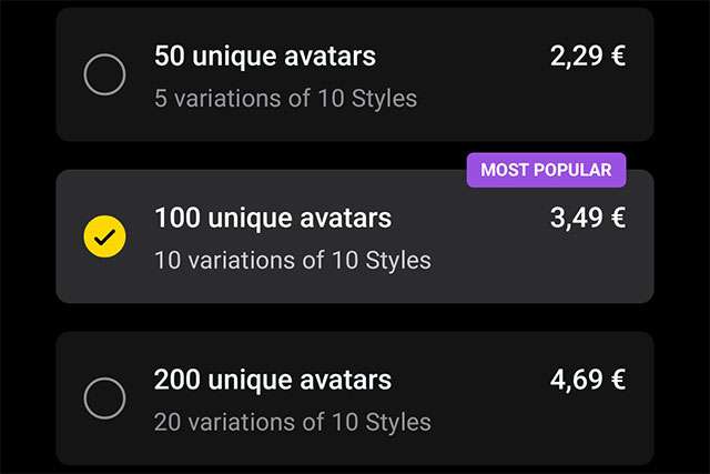 Magic Avatar consuma un’enorme potenza di calcolo per creare i tuoi magnifici avatar. È costosa, ma l’abbiamo resa il più economica possibile.