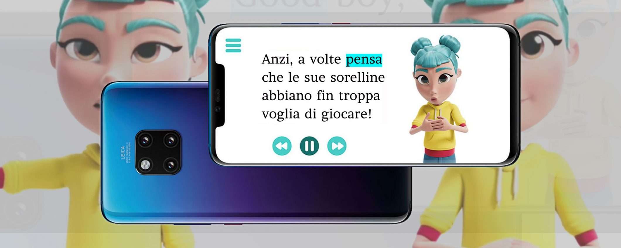 L’iniziativa è stata portata avanti da Huawei in collaborazione con la British Deaf Association, con l’Unione Europea dei Sordi e con lo studio britannico Aardman Animations che si è occupato delle animazioni di Star, la protagonista dell’app. Il funzionamento è semplice: basta inquadrare una pagina con la fotocamera dello smartphone e il sistema si occupa autonomamente di rilevarne il testo, riproponendolo sullo schermo al fianco del personaggio che lo traduce nel lingua dei segni.