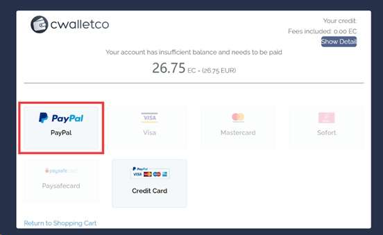 - Infine, seleziona PayPal per completare il pagamento: