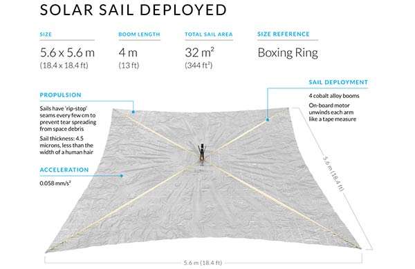 Servirà un’ulteriore settimana per mettere alla prova il corretto funzionamento delle videocamere presenti a bordo, così come del sistema che si occuperà di correggere la direzione del movimento. Una volta spiegate (l’operazione richiederà in totale non più di un paio di minuti), le vele copriranno una superficie pari a circa 32 metri quadrati. Il design di LightSail 2 si basa su quello del satellite miniaturizzato CubeSat.