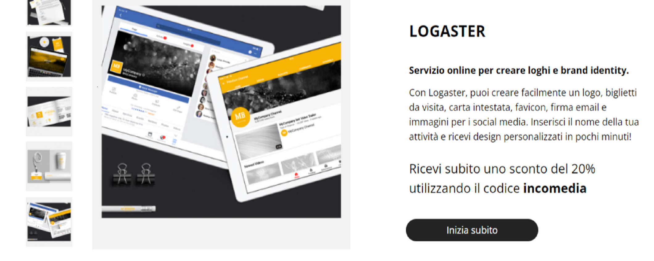 Scopriamo altri motivi per cui scegliere il servizio Logaster Incomedia per creare il proprio logo e come ottenere lo sconto del 20%.