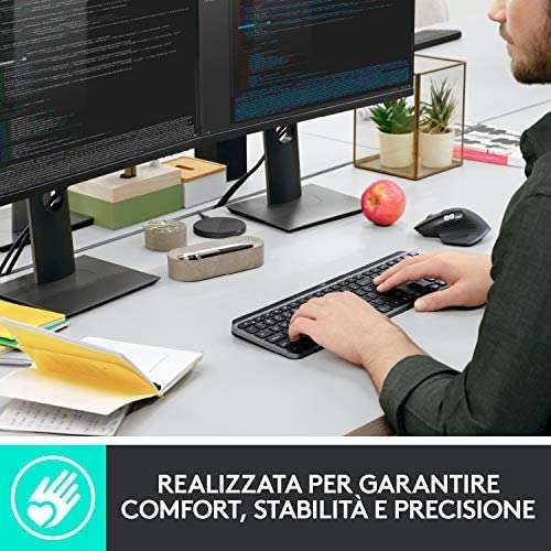 Questa periferica fa parte della gamma MX del brend elvetico, che propone una serie di prodotti di fascia alta ideali per i professionisti. Design e qualità costruttiva sono le parole più corrette per descrivere la Logitech MX Keys, disponibile con layout italiano sia in versione per Windows che nella variante pensata per MacOS.