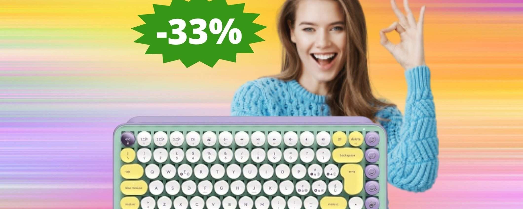 Immergiti in un mondo di emozioni con la tastiera meccanica Logitech POP Keys in Daydream. Un’esplosione di colori vivaci, tra menta, lilla, bianco e il calore del giallo sole, creano un’estetica fantasiosa con un tocco di fresco mojito. Questa tastiera non solo si distingue per il suo design accattivante, ma offre anche un’esperienza di digitazione unica. Attualmente in mega sconto del 33% su Amazon, è il momento perfetto per acquistarla al prezzo speciale di soli 79,99 euro, anziché 119,00 euro.