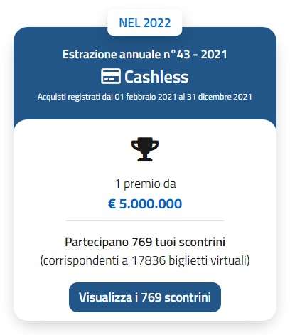 Ad ogni premio corrisponde un corrispondente riconoscimento per l’esercente che ha registrato l’operazione: nel caso dell’estrazione annuale, ad esempio, il premio è pari a 1 milione di euro.
