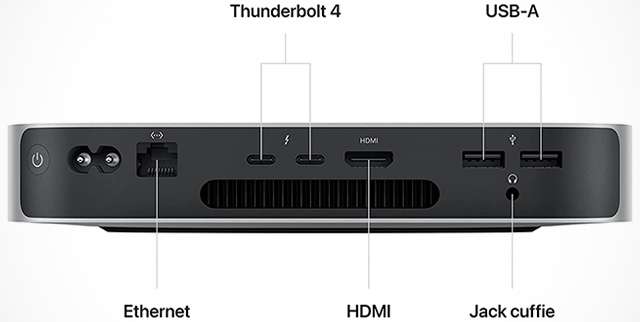 Il cuore pulsante è rappresentato dal chip progettato internamente dal gruppo di Cupertino con CPU 8-core, GPU 10-core per l’elaborazione grafica e Neural Engine 16-core per le operazioni di intelligenza artificiale, 8 GB di memoria unificata, unità SSD da 256 GB per l’archiviazione dei dati, moduli Wi-Fi 6E e Bluetooth 5.3 per la connettività wireless, slot Gigabit Ethernet, due porte Thunderbolt 4, USB 3.1 Gen 2 Tupe-A, uscita video HDMI e jack audio. Il sistema operativo preinstallato è macOS Sonoma con supporto garantito alla ricezione degli aggiornamenti per le versioni che saranno distribuite nei prossimi anni. Tutti gli altri dettagli sono riportati nella pagina dedicata.