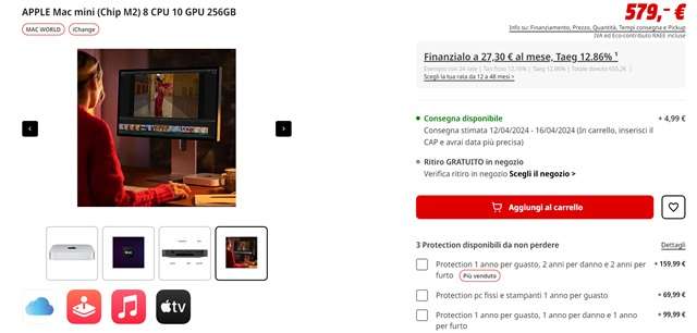 Per ottenere il Mac Mini con processore M2 a soli 379 euro devi disporre di un Mac usato, anche non funzionante. In caso affermativo, completa l’ordine sul sito mediaworld.it selezionando Ritiro in negozio e Pagamento al ritiro in negozio.