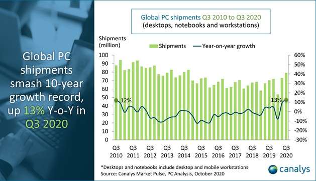 Il mercato dei personal computer sta vivendo appieno l’effetto “Covid” che era già stato intravisto fin dall’inizio dell’anno. Con l’arrivo dei primi lockdown e con l’emergere della pandemia, infatti, i consumi sono piombati e per il mercato dei PC (già ampiamente saturo da anni) si apriva dunque una stagione densa di incertezze. Era previsto tuttavia un rimbalzo a fine anno, qualcosa che è avvenuto tuttavia con dimensioni ancor più ampie rispetto alle stime.