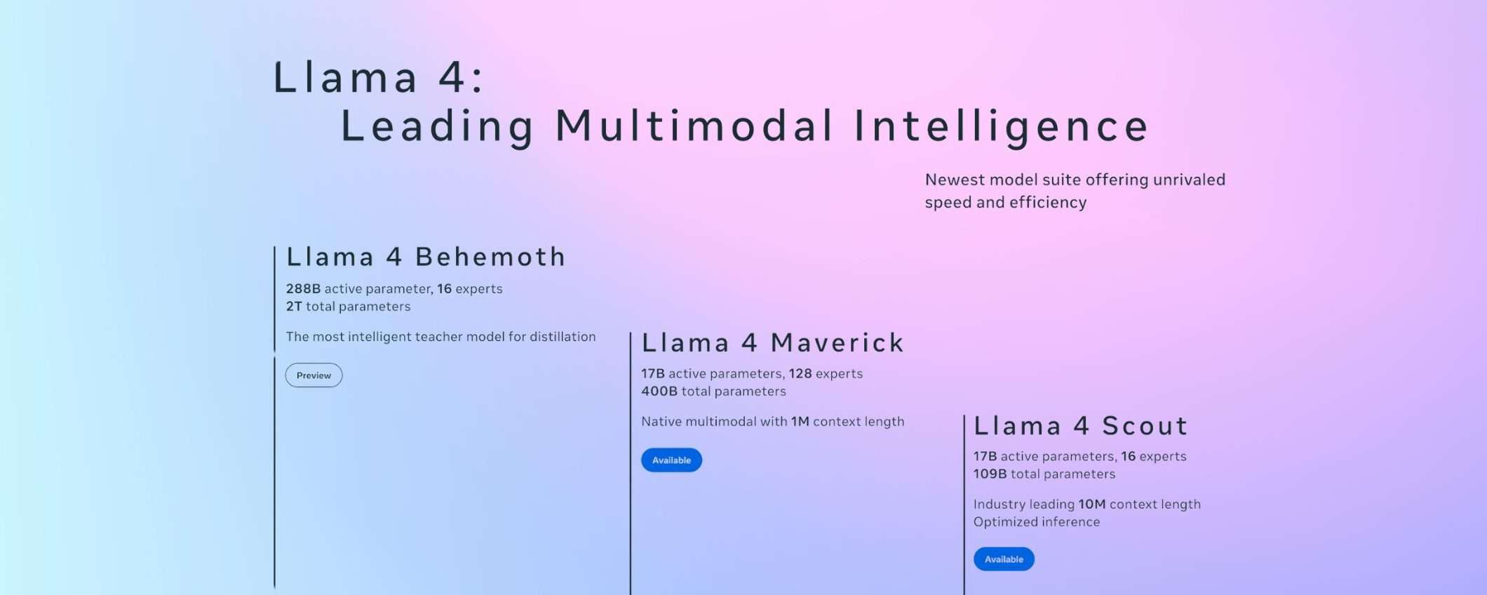 Scout e Maverick sono già disponibili su Llama.com e attraverso i partner di Meta, come la piattaforma di sviluppo AI Hugging Face. Behemoth, invece, sta ancora sudando in palestra… Nel frattempo, Meta AI, l’assistente AI di Meta per app come WhatsApp, Messenger e Instagram, è stato aggiornato con Llama 4 in 40 paesi, anche se le funzionalità multimodali sono limitate agli USA e all’inglese per ora.