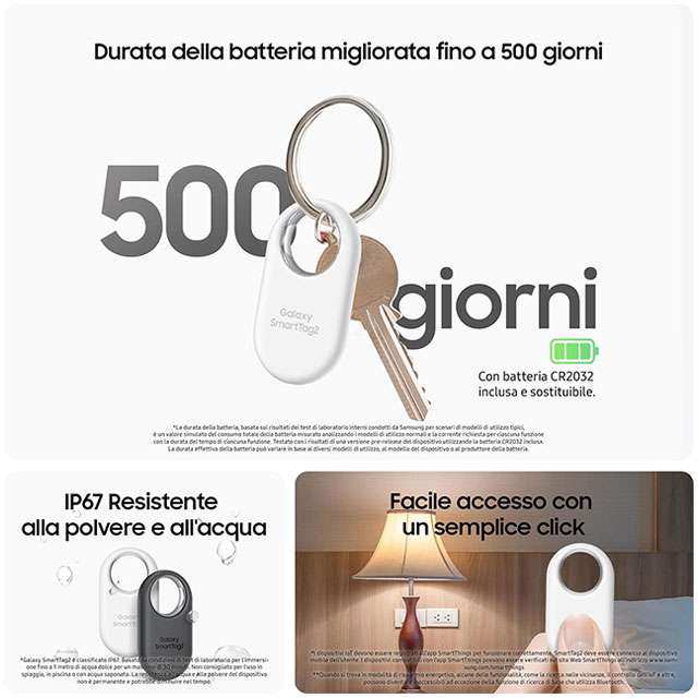 I punti di forza del prodotto sono molti. In primo luogo, offre un’autonomia di 500 giorni e la possibilità di sostituire facilmente la batteria interna una volta esaurita (una comune CR2032 a bottone), evitando così di doverla buttare, come accade invece con molte alternative della concorrenza. Inoltre, vanta la certificazione IP67 per garantire resistenza all’acqua, la compatibilità con la tecnologia NFC per condividere il proprio contatto con chi lo trova e la piena compatibilità con tutti i dispositivi Android. Vuoi saperne di più? Fai un salto sulla pagina sull’e-commerce.