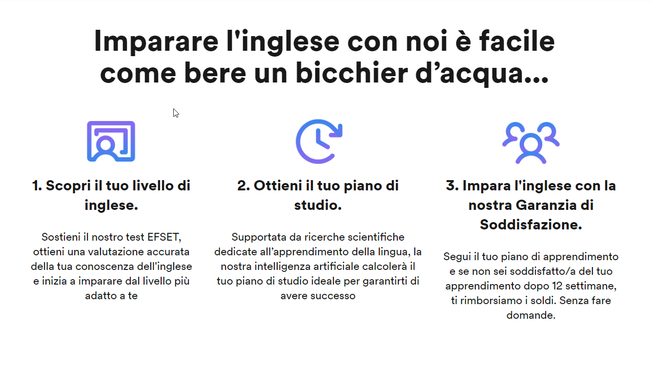 EF English Live ti propone qualcosa che è più di una promessa. Dopo 12 settimane di corso, potrai richiedere il rimborso, se la metodologia di insegnamento usata non ti sta dando i frutti sperati, ma siamo sicuri che non accadrà mai.