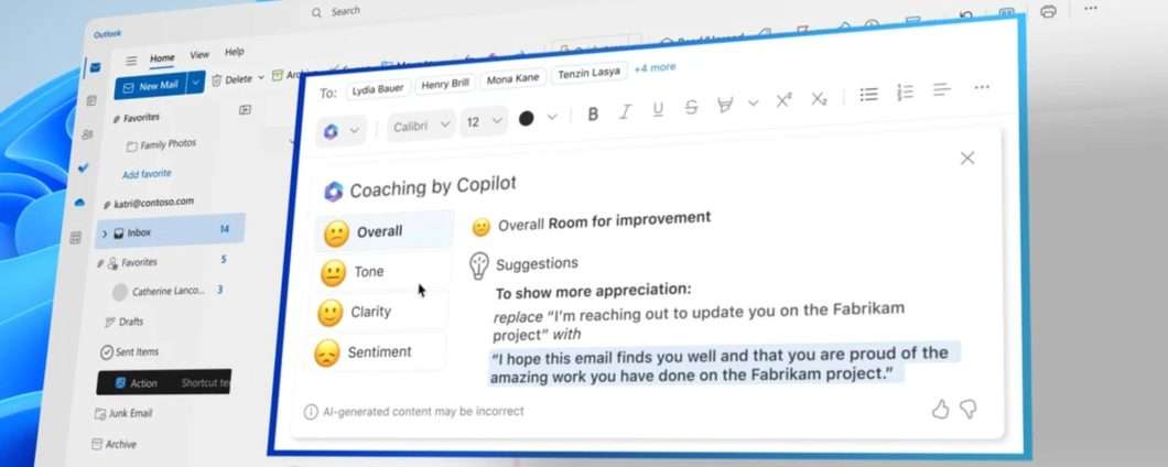 Grazie a Copilot per Outlook è possibile scrivere email utilizzando il tono appropriato. Copilot per OneNote genera idee, crea liste, organizza il contenuto, modifica la formattazione e crea riassunti con elenco puntato. Microsoft non ha comunicato quando l’assistente digitale sarà disponibile a tutti (o almeno in beta pubblica).