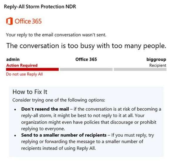 Il sistema identificherà automaticamente i “Rispondi a tutti” pericolosi e darà priorità di traffico ad altri tipi di messaggi: l’utente vedrà l’avviso relativo all’inopportunità di rispondere mettere in quarantena le risposte consentirà di gestire meglio i flussi e di regalare tempo utile agli interventi manuali. Ogni admin potrà gestire in autonomia le proprie regole di identificazione e blocco dei messaggi, ma in futuro le opzioni saranno ulteriormente aumentate per consentire una gestione ancor più intelligente e raffinata del problema.