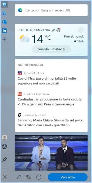 Microsoft ha rilasciato la nuova versione del suo browser. Microsoft Edge 98 include diverse novità, ma la più interessante è denominata Edge bar (barra di Edge in italiano). Si tratta di una barra laterale che permette di effettuare ricerche online e di visualizzare le notizie su Windows 10 e 11, anche quando viene chiuso il browser o usate altre applicazioni.